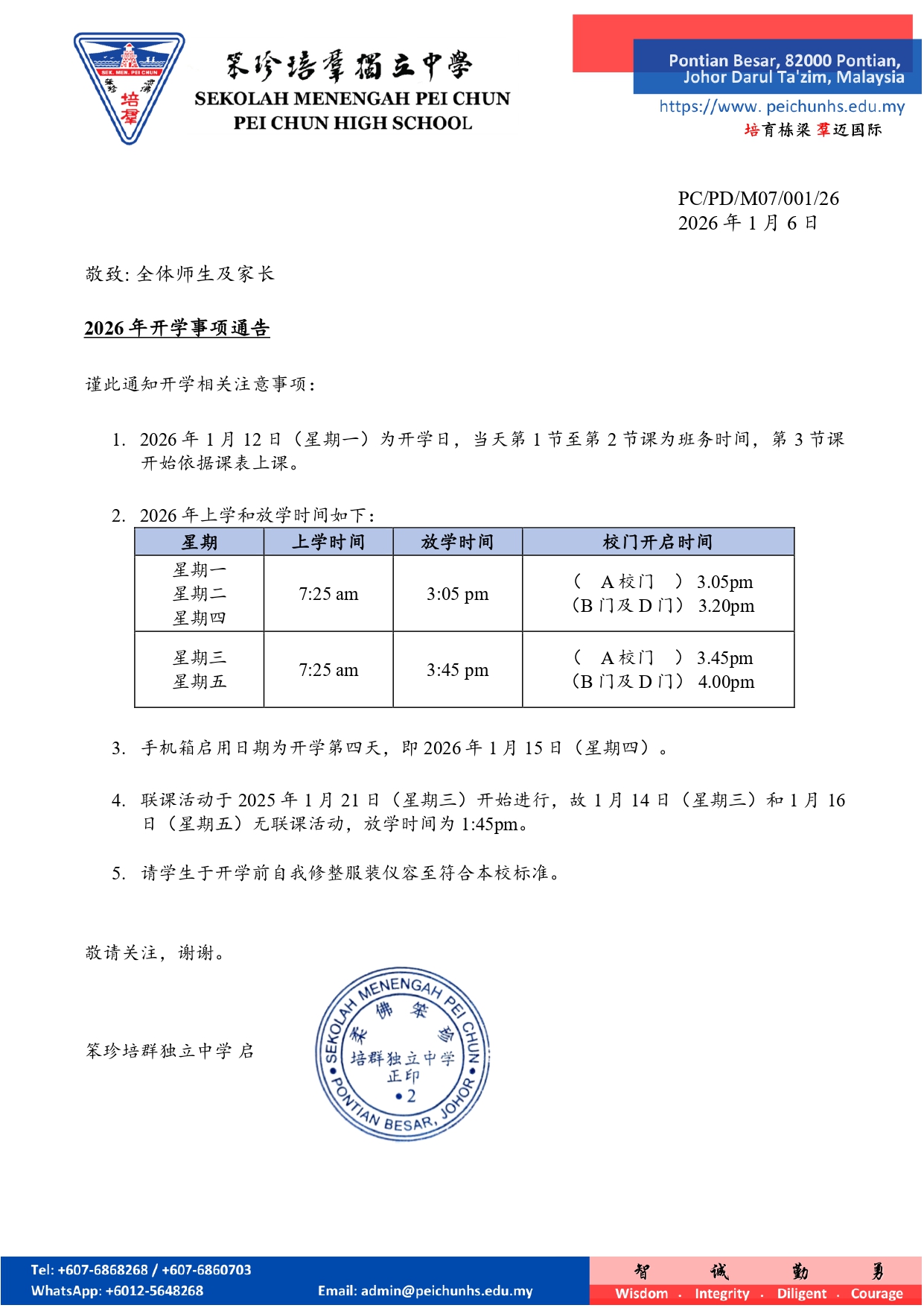 笨珍培群独立中学 2026年度初中一入学试注意事项