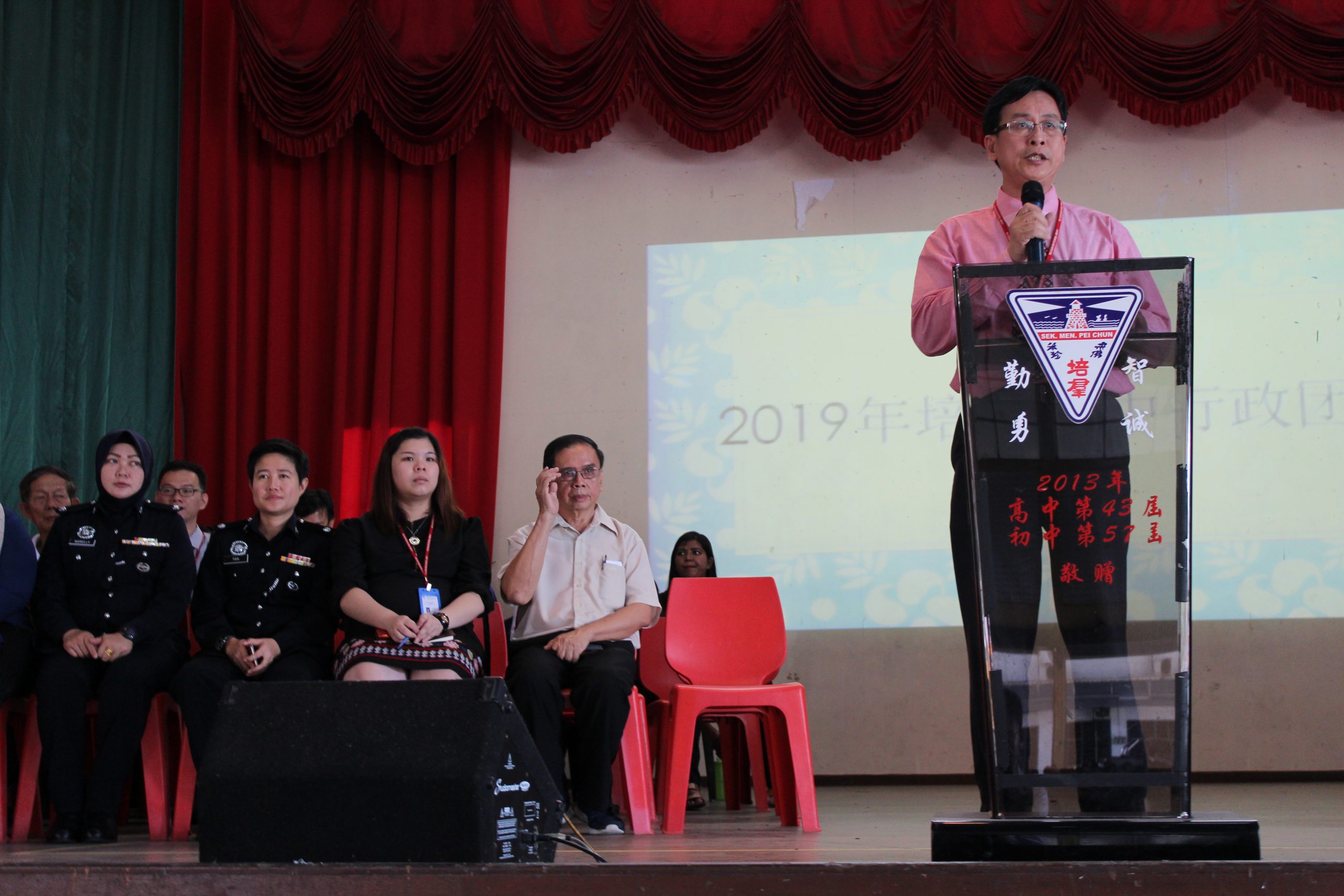 IMG01_本校校长王桢文在2019新学年始业式上致词。