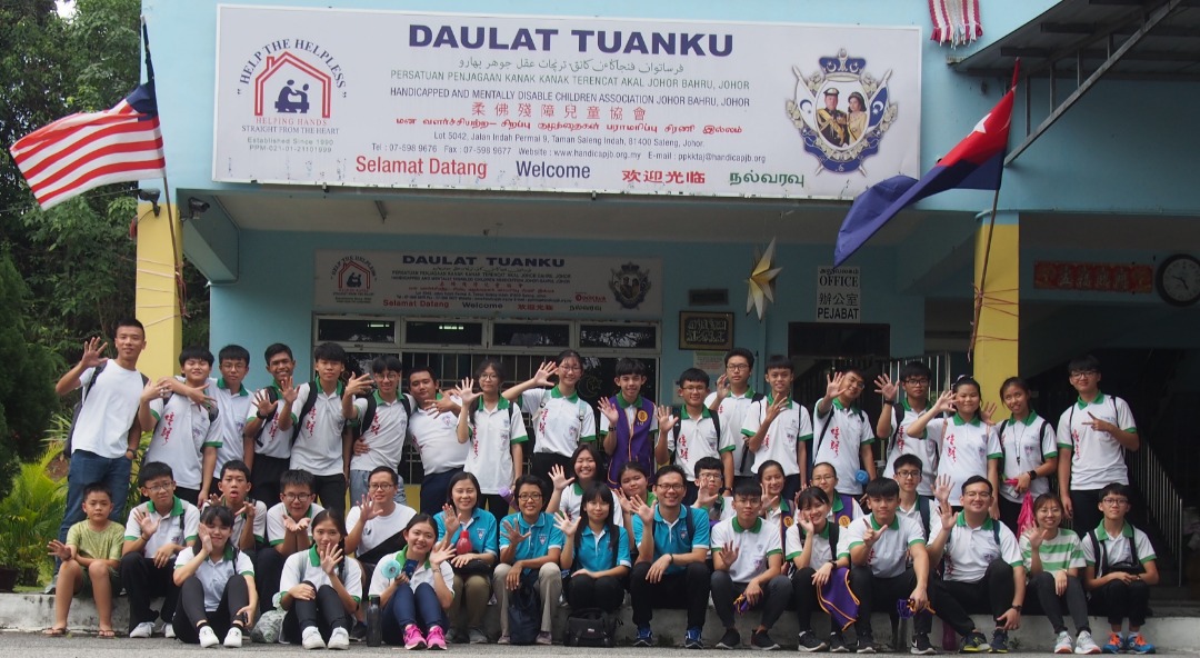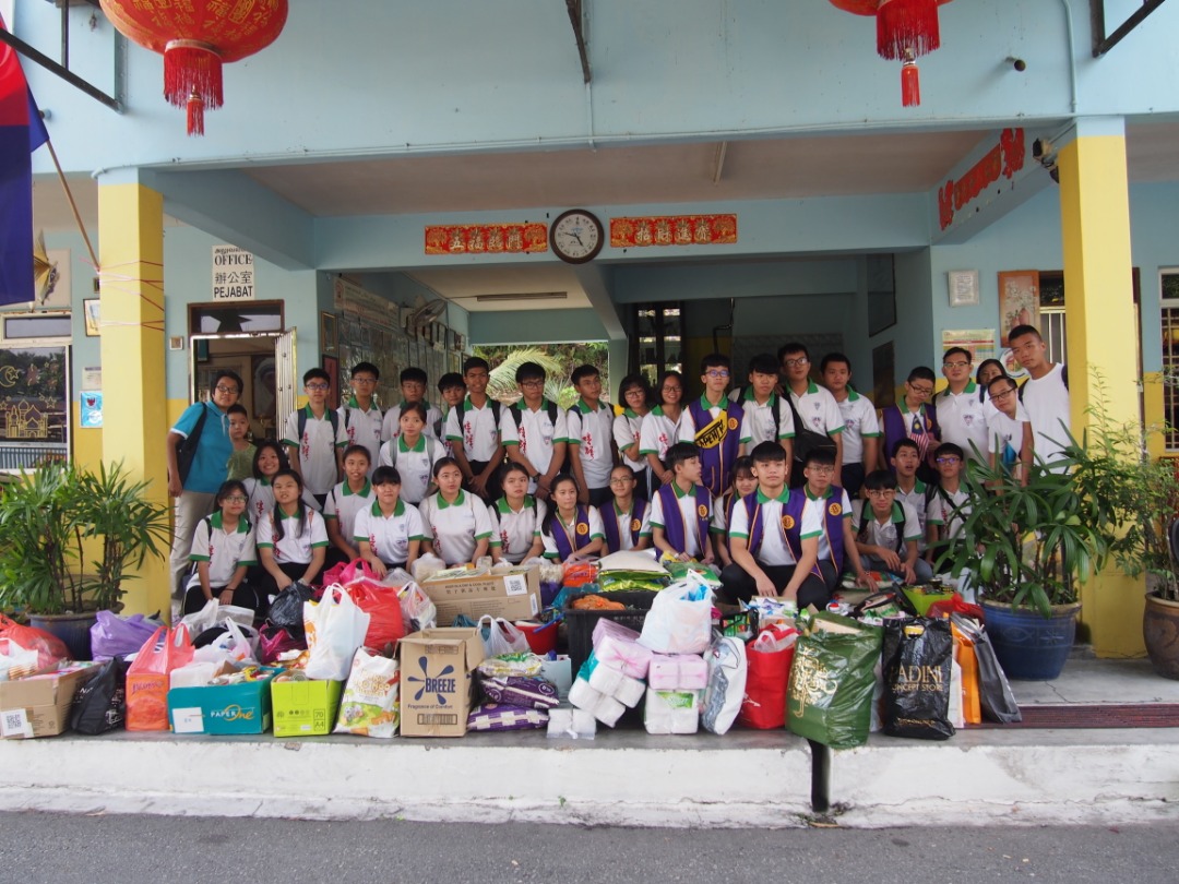 学生义工带着全校师生捐赠的物资到古来沙令残障协会