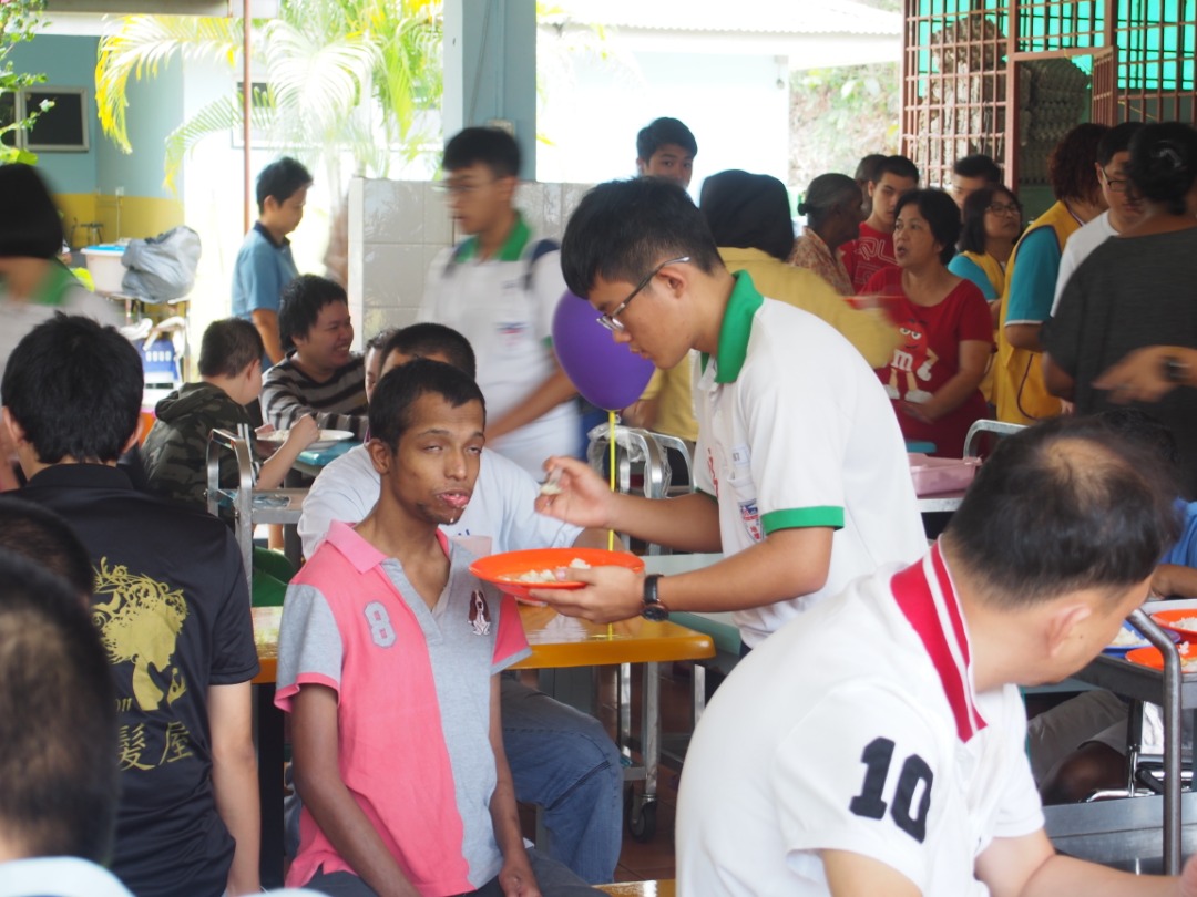 学生协助不方便的弱势朋友用餐