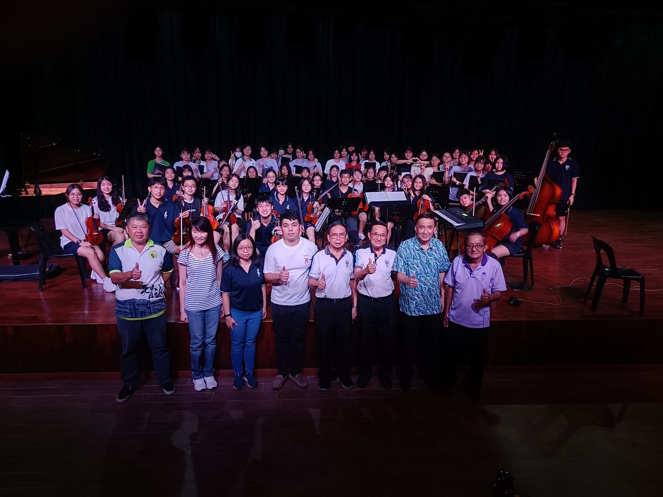 日前,麻坡中化中学弦乐团在刘康怡老师的带领下,亦远道而来,前来本校参与彩排,同时也与本校合唱团进行交流,培养默契。活动间,本校林青赋董事长亦率领众位董事来宾,包括笨珍华团主席拿督陈振福、陈中华副董事长、沈俊豪总务、陈亚栋财政,前来观看节目彩排,为同学们加油打气。
