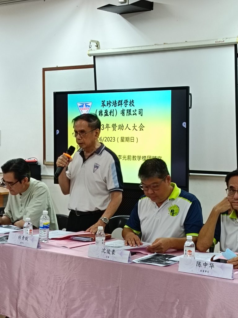 笨珍培群独中董事部于今日(11日)召开笨珍培群学校(非盈利)有限公司2023年常年赞助人大会,会议由本校法律顾问 罗日良律师担任大会议长。会上,超过100位赞助人出席,聆听培群独中董事部对过去一年的业务汇报;同时,会议也一致议决通过,将购置太阳能板发电系统,预计将每月省下约 RM 20,000。
