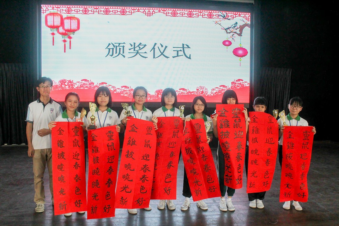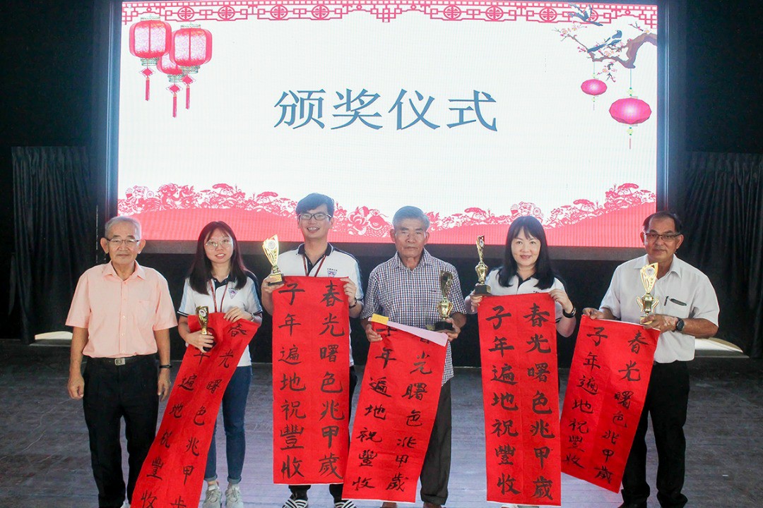 新春各项活动成绩揭晓,挥春比赛各组特优奖项的得主为陈纬倩、曾心妍、张珊珊、吴心怡、杨乐妤、林方萱、周婉瑜、陈思阳、吴滢煊。公开组方面则是副董事长陈中华、董事林松诗、陈亚栋、王会詅、黄淑贞、梁瑞芳、潘力荣与陈灌运获得奖项。颁奖礼上也公布了新春主题班级布置比赛、年饼义卖筹款比赛等成绩,整个活动在一片祝福与欢笑声中圆满落幕。
