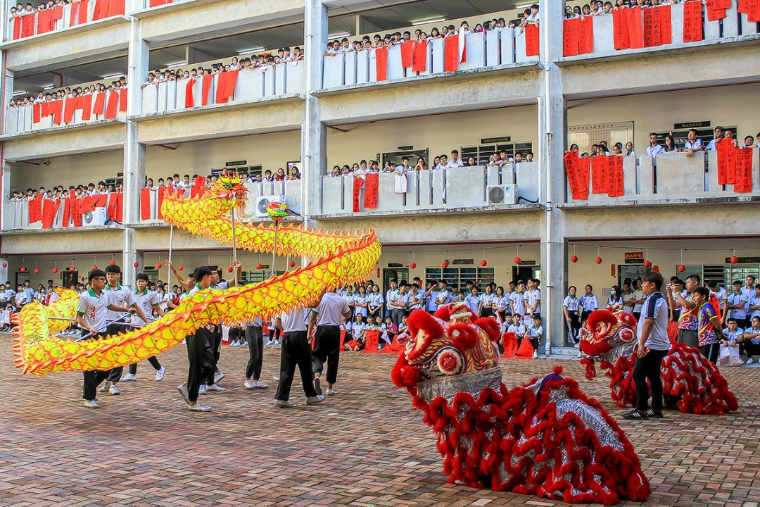 本次新春庆祝活动,加入了祥龙点睛开光仪式。拿督黄种文为其惠赠的祥龙点睛,宣告本校龙狮团兴趣班正式成立。完成点睛仪式,祥龙威风凛凛随龙珠盘旋起舞,搭配醒狮助兴,锣鼓喧天倍添新年喜悦。