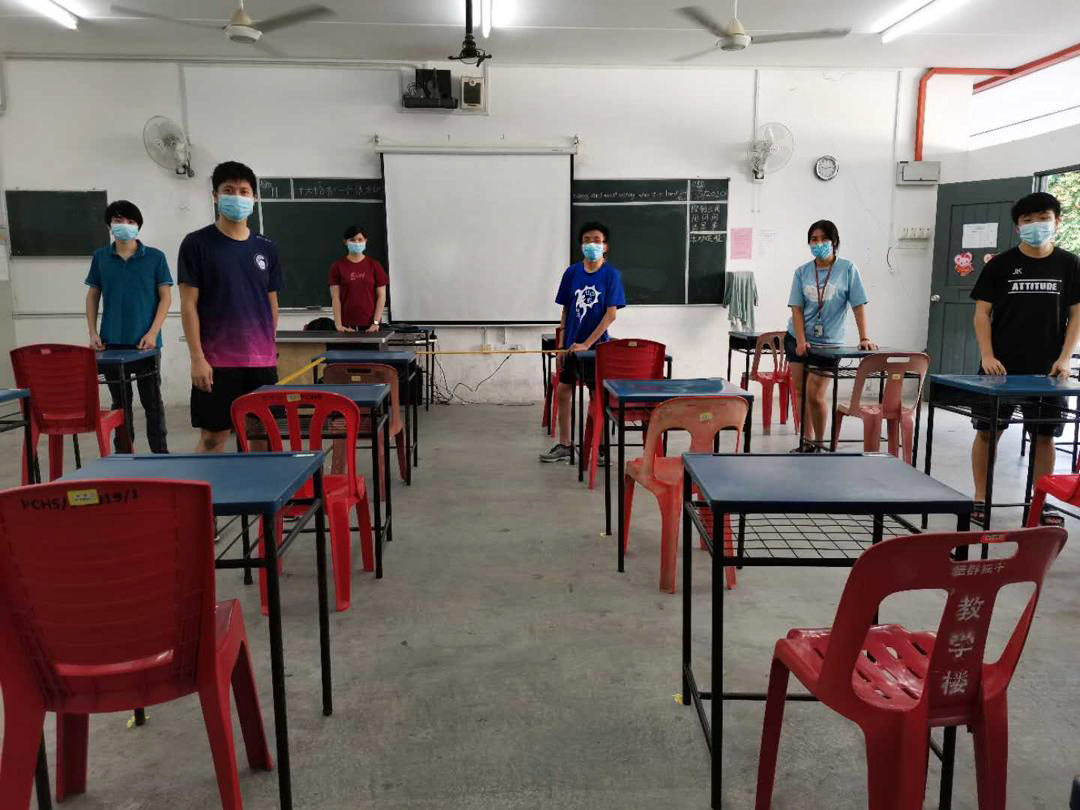 随着教育部宣布中五与中六生于本月24日率先复课,培群独中立即成立工委会筹备复课事宜,行政人员遵循当局指南,紧锣密鼓地展开复课的准备工作,包括重新编排课室座位、清洗办公室与课室,在全校范围进行消毒,以及规划校园行动路线等,使校园环境更加卫生与安全。