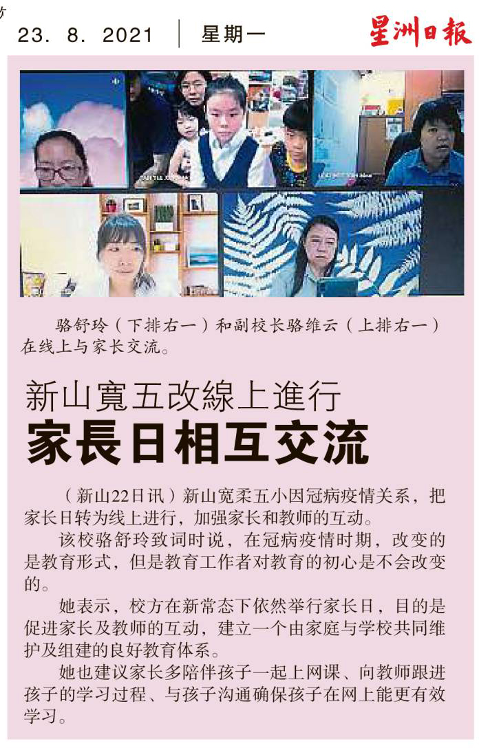 (新山22日讯)新山宽柔五小因冠病疫情关系,把家长日转为线上进行,加强家长和教师的互动。