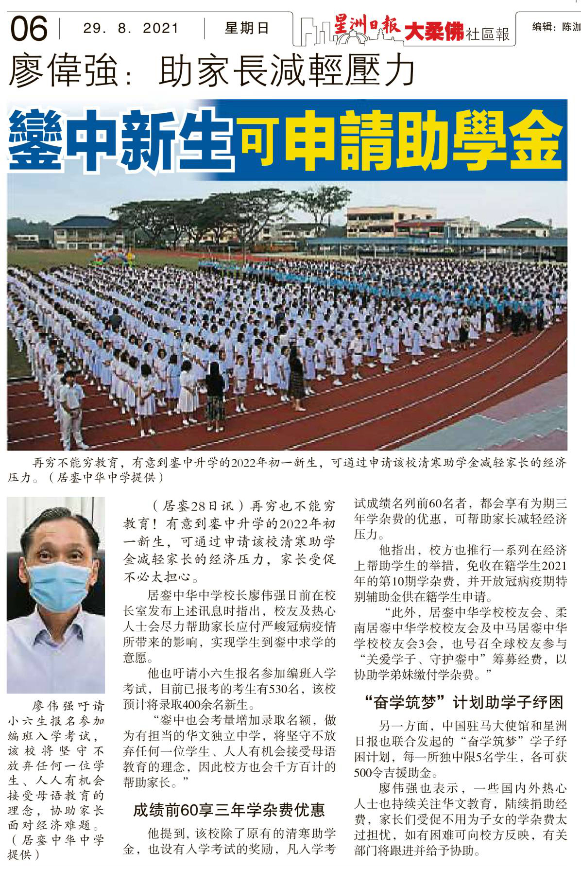 廖伟强:助家长减轻压力 銮中新生可申请助学金