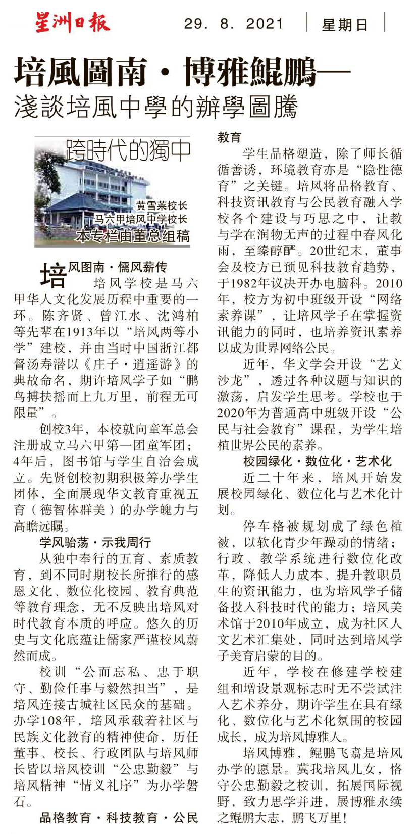 马六甲培风中学校长