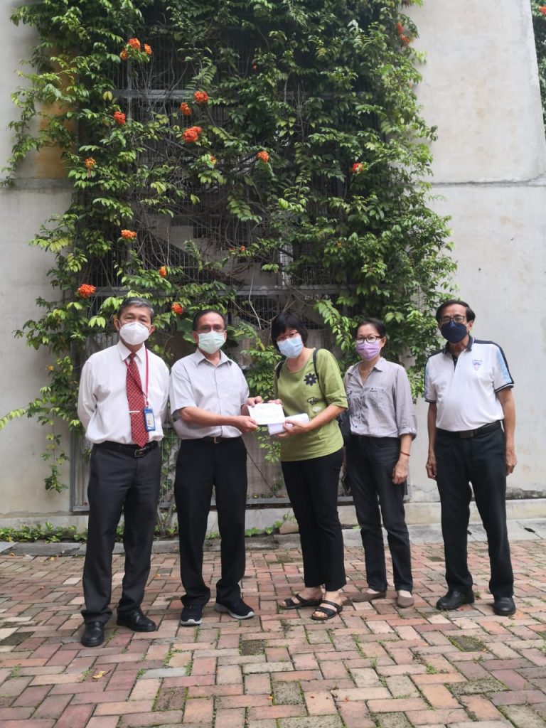 热心华教 姐妹捐献10万予本校『护苗助学基金』 懿欤培群 百年树人 一个退休小学校长特地麻坡,联同他的妹妹则从吉隆坡,受家族委託,特地一起来到培群独立中学捐献10万令吉给『护苗助学基金』。 为善不为人知,本校对两位的善心及培育后进的崇高精神致以敬意。 两位善心姐妹(左3及4)移交10万令吉支票予董事长林青赋(左2)。 陪同接领的则是校长黄金贵(左1)及副董事长陈中华(右1) 文章导航 2022年教师节 董事会捎来调涨教师薪金 署理董事长拿督黄种文:翼笨珍县华小生就读 学费优惠20%