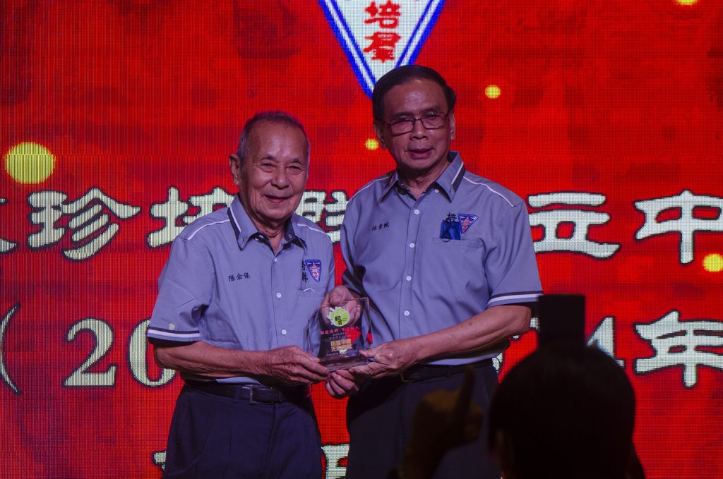 随后进行的是感恩仪式,感谢陈黎祖、林松诗、张毅、李群熙、张明运、陳金保及陈美云,7位名誉副董事长这些年为培群独中的奉献。