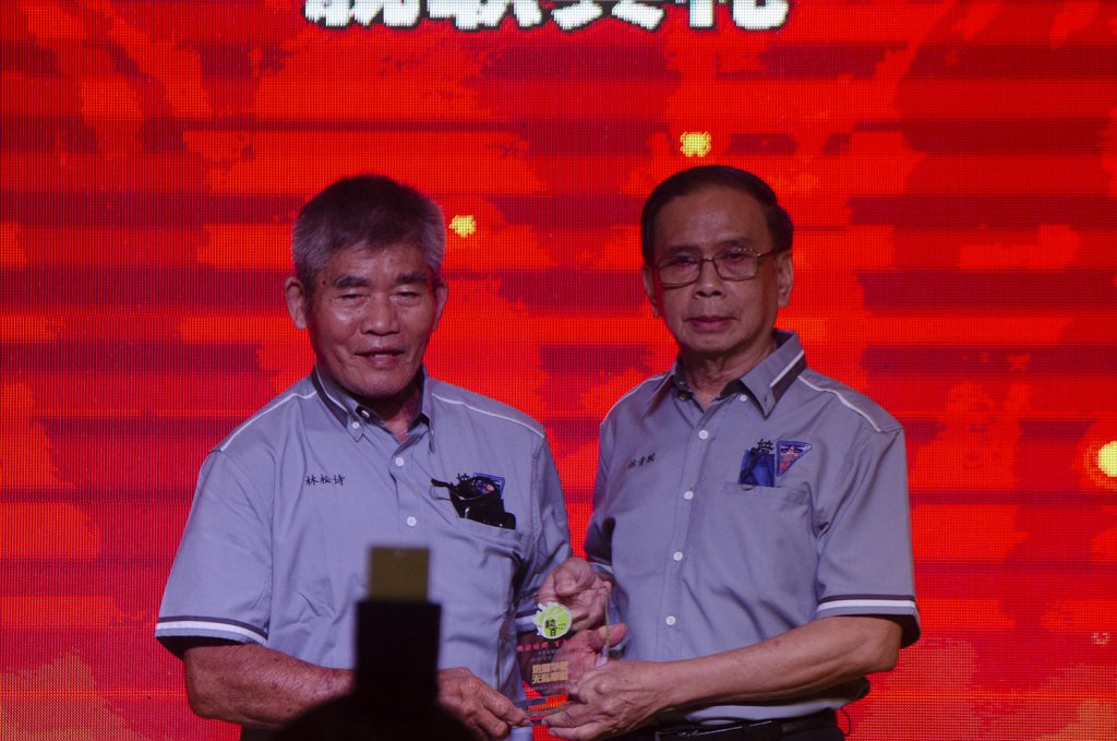 林青赋董事长(右)颁发纪念品予陳金保(左)。