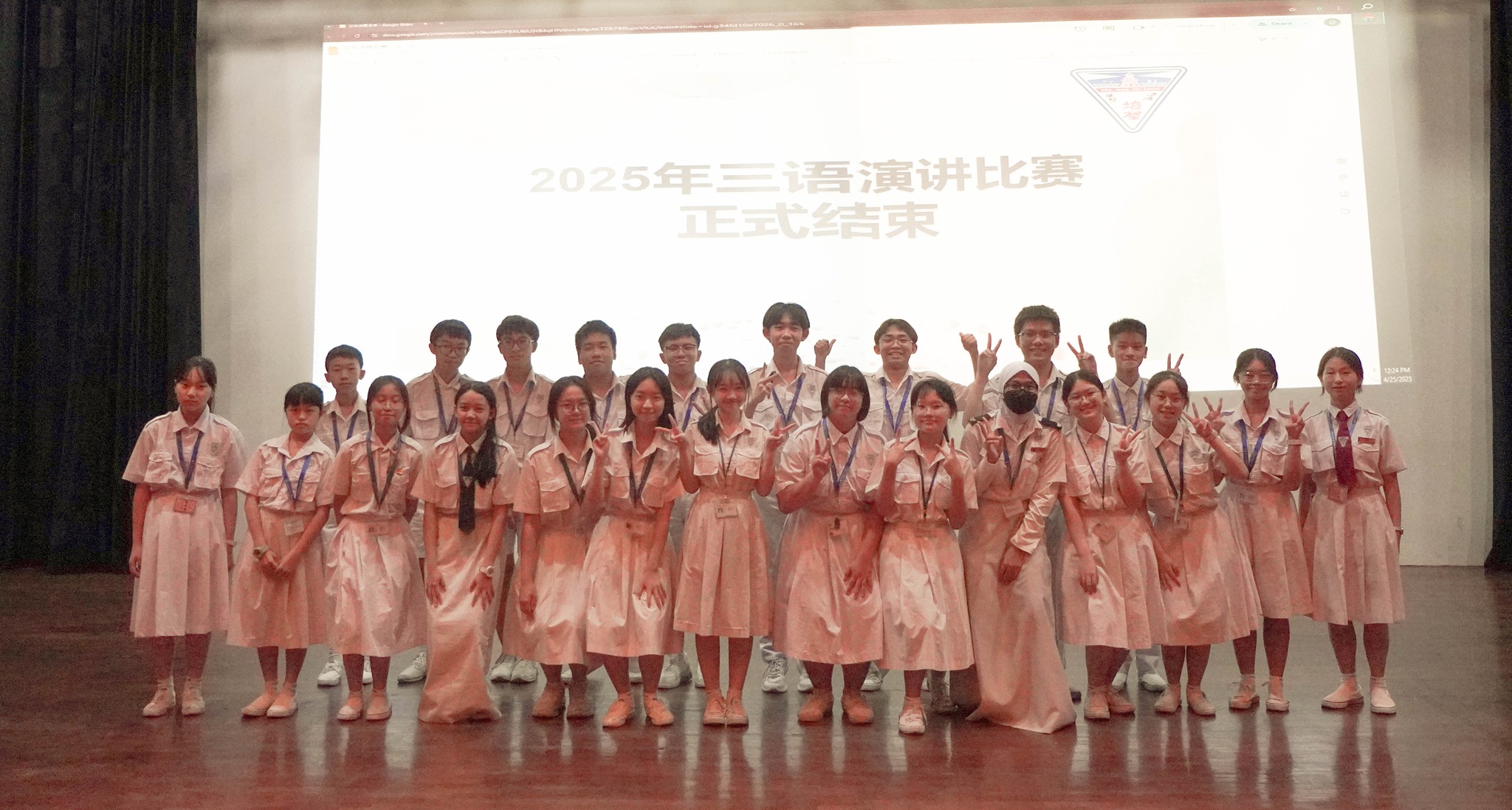 由本校教务处主办的”2025年三语演讲大赛”总决赛于4月25日(星期五)上午在李织霞礼堂隆重举行。经过激烈角逐,23位优秀选手凭借出色的英语、华语及国语表达能力,在舞台上尽展才华,为观众呈现了一场精彩纷呈的语言盛宴。