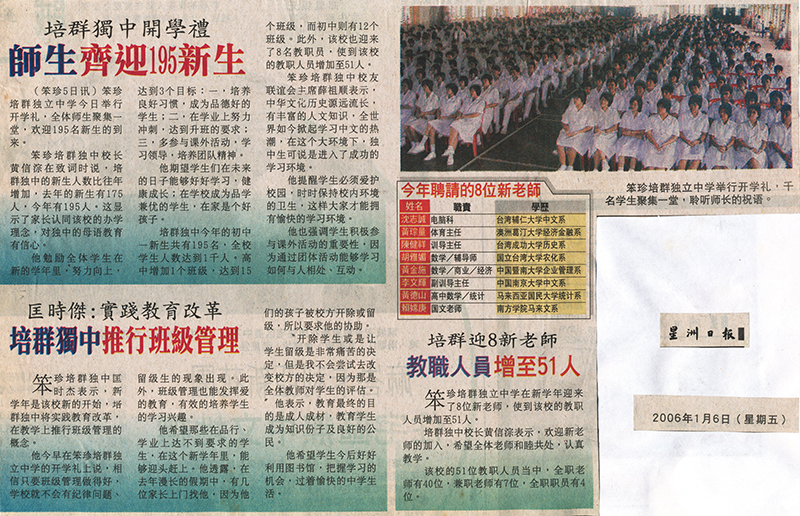 笨珍培群独立中学在新学年迎来来了8位新老师,使到该校的教职人员增加至51人。