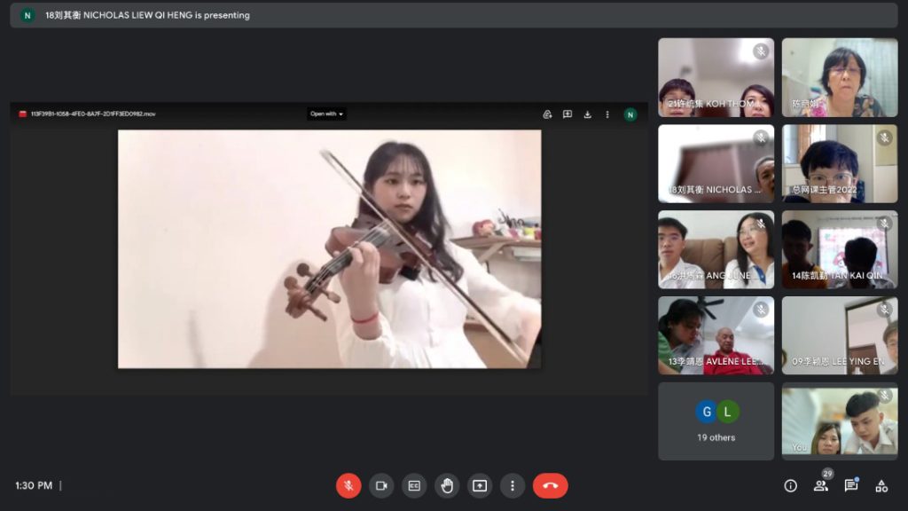 本次线上家长日,校方将六个年级安排在不同时段进行分享与交流。班导师不仅分享自己的班级经营,也汇报上半年班级总体概况与成绩,让家长及时了解孩子在校的学习情况。而在历时一小时的阳光式家长日结束后,有些班导师也会联系家长晤谈,就孩子的教育与课业进行沟通。令人欣喜的是,好些班级交由学生去策划与主持家长日活动,提供他们施展才华的平台。各班同学通过预先录制好的才艺视频,善用通讯科技,在家长们眼前展现亮点。
