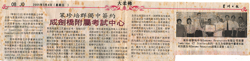 黄校长也说,独中学生不但需要学习资讯与通讯工艺,同时也应该接受符合国际标准并受到推崇的外部评审,鉴定他们所学习的电脑技能,是否达到国际水平。剑桥资讯与通讯工艺鉴定证书课程就为学生提供了考取国际证书的难得机会。他希望通过这项计划,笨珍培群独立中学的学生所掌握的资讯与通讯工艺技能,能够正式获得享誉国际的英国剑桥大学之鉴定与肯定。