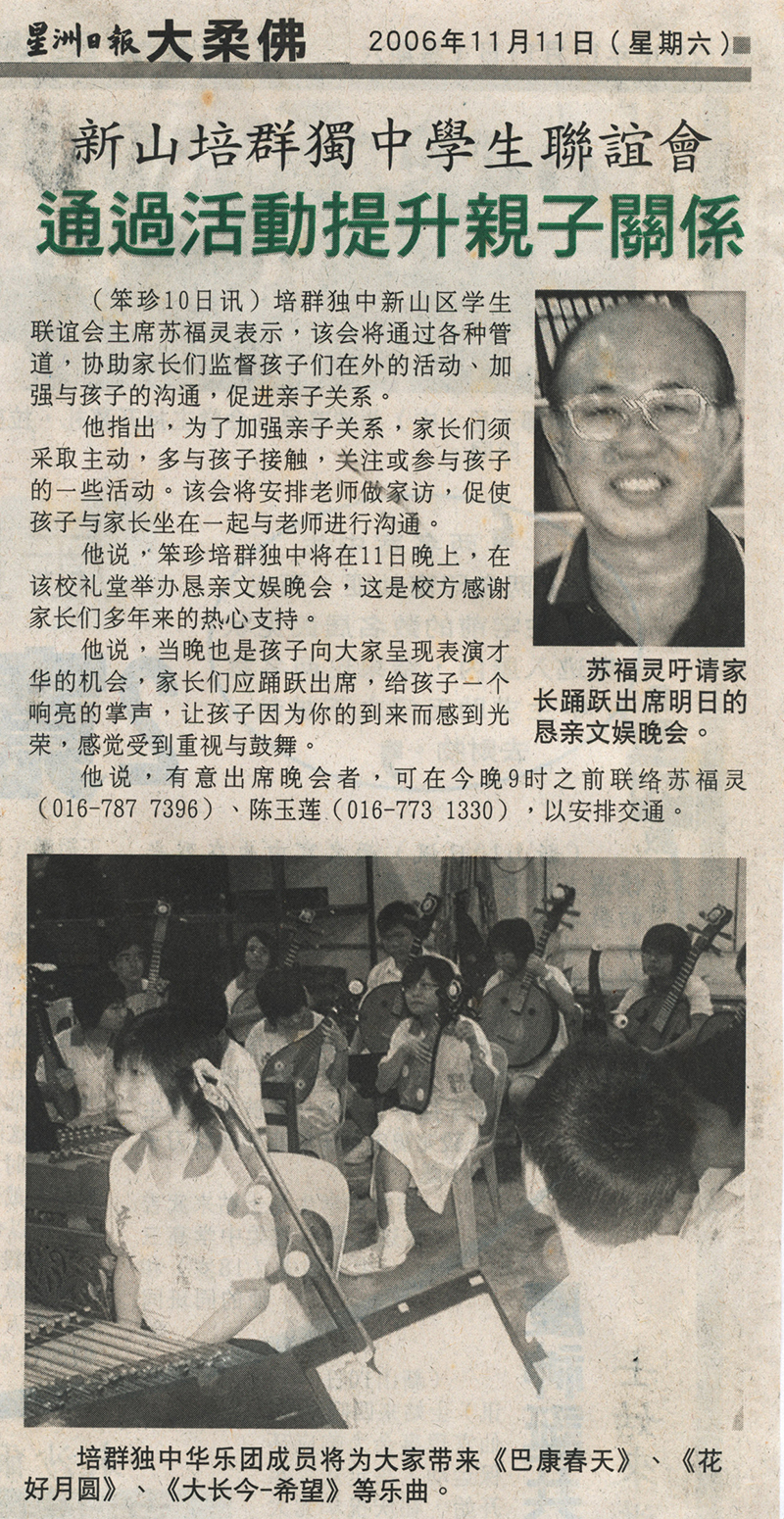 (笨珍10日讯)培群独中新山区学生联谊会主席苏福灵表示,该会将通过各种管道,协助家长们监督孩子们在外的活动、加强与孩子的沟通,促进亲子关系。
